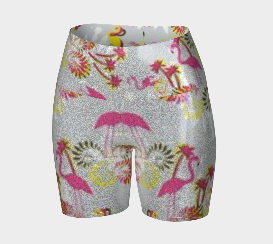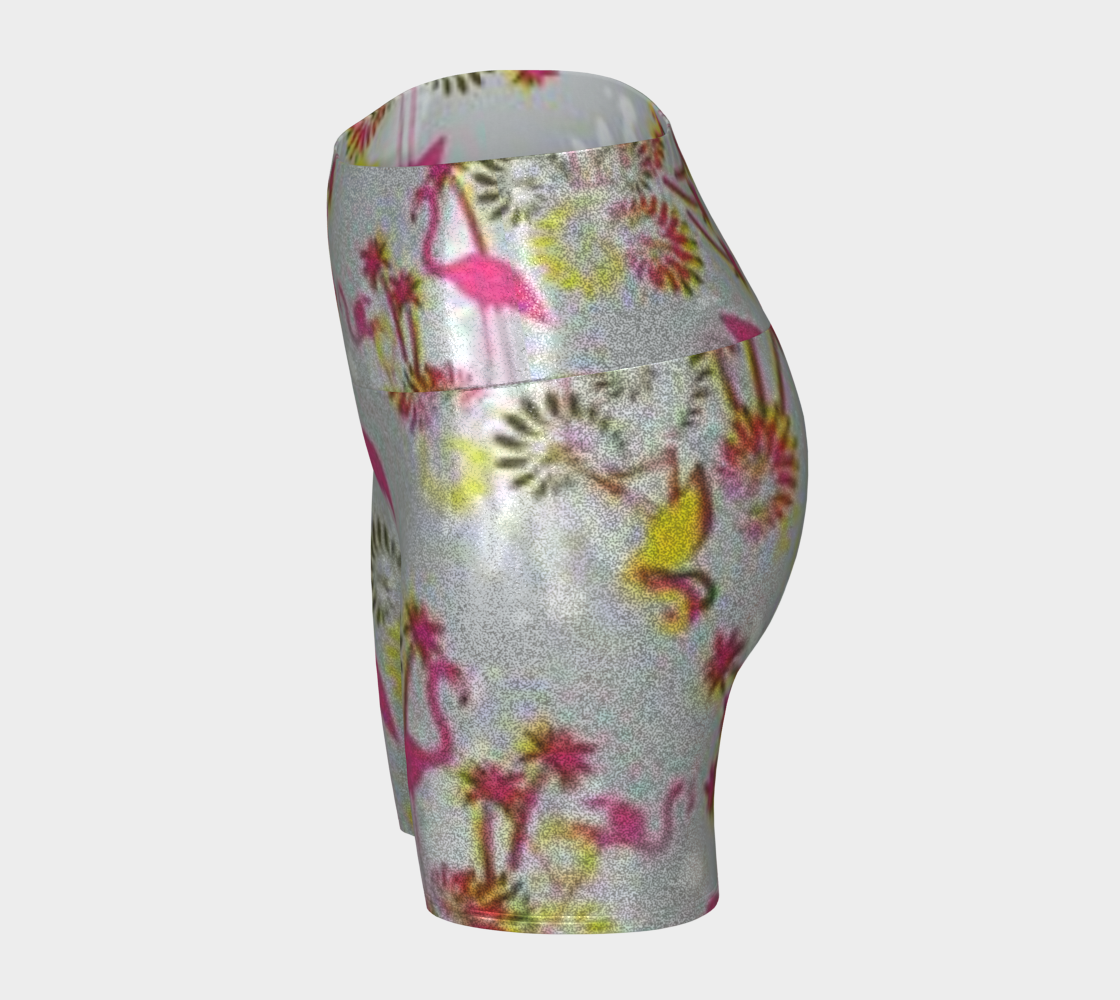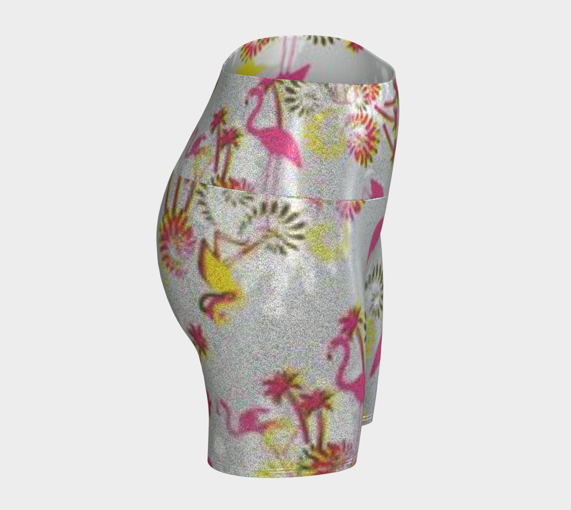 Custom Handsewn Glitter Sport and Fitness Shorts for Women, Teen Girls, and Moms-Pink Flamingo Pattern, Made In Canada