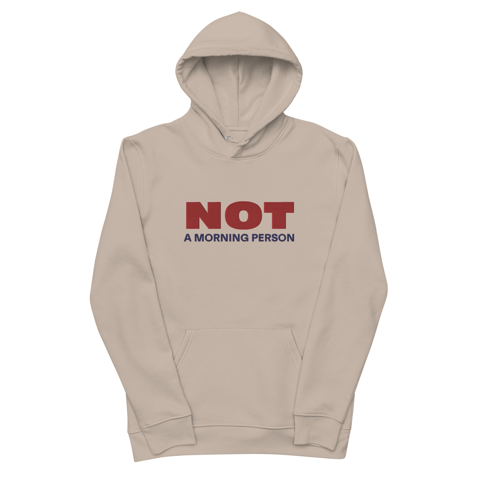 Be among the first set of people to rock our new addition, "Large Embroidery Graphic Apparel." Not a Morning Person is a funny and motivational graphic hoodie that speaks about the uniqueness of late sleepers. Wear it to make a bold statement about who you are with no apology!