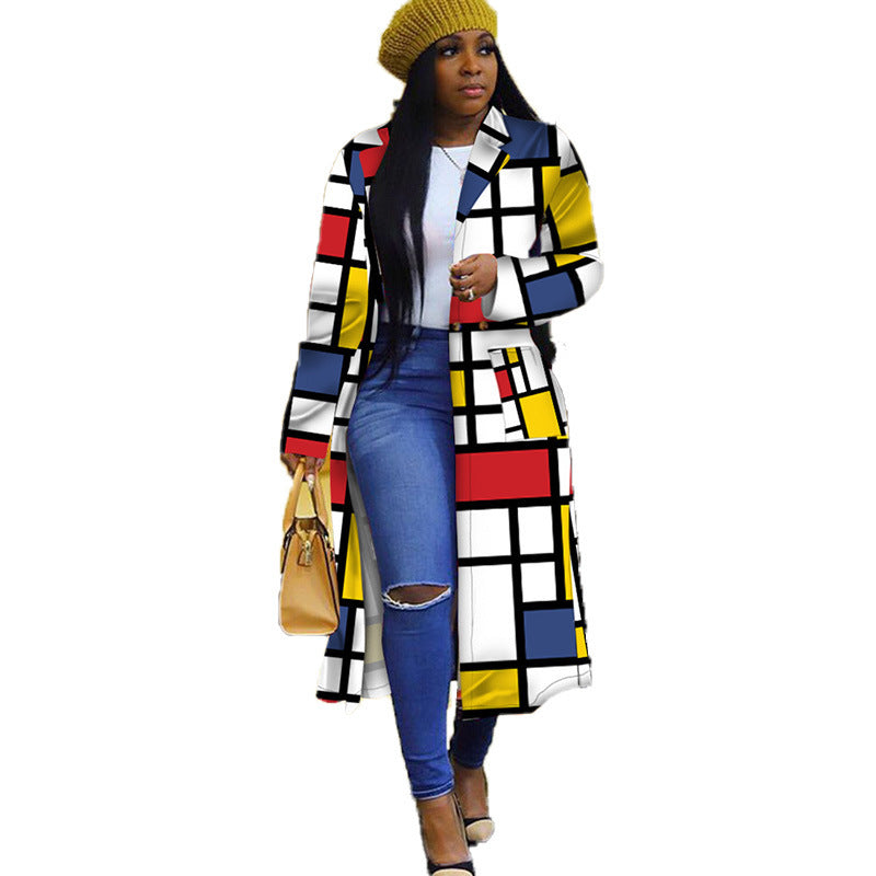 Spring African Women Long Sleeve Printing Plus Sie Long Shirt Dress S-5XL